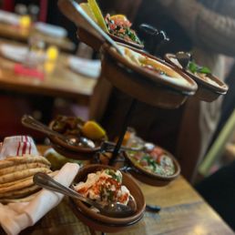 I had a great meal here. Quite expensive, it ended up being $105. I got the mixed meat platter and the hummus appetizer. The hummus appetizer was five stars easy. It is so delicious, so unique, and the bread it comes with is also delicious. The appetizer is also quite filling so I feel that we could've just stopped there. The meat platter was very tasty and unique. It's an assortment of sausages cooked inside a pita bread. Very cool demonstration. But the taste wasn't all that amazing. Good quality though. But the taste and wowness of the hummus far exceeded my pleasure with the platter. All the sauces that the place provides are super tasty. I especially love the red one. You need to try that.