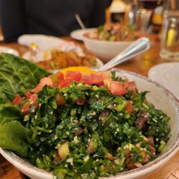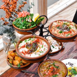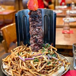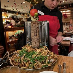 One of my favorite spots in alphabet city! I love the mixed grill platter / platter supreme and the Halloum Mekli is delicious! The Fattet Djaj is also so tasty!! The dips and mezza apps are sooo good and if you have a few people you can order the one thing they don't even have on the menu - the original table side shawarma!! A heater is brought to the table. The heater is plugged in to keep the meat hot and there's a half frying pan that keeps the meat separate from the cascading plate of fries. There is a choice of beef, chicken or lamb. My only complaint about this meal is that the fries are tasty but not crunchy at all. All in all though I love it and love to take out of towners - especially in nice weather - for a real NYC experience!